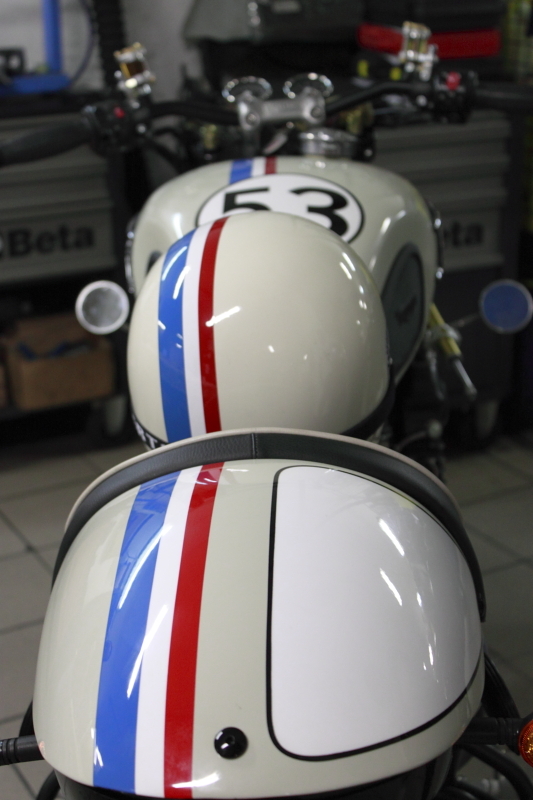 Preciosa!! es curioso como cambia una moto cuando le cambias la trasera.Curiosos los depositos de liquido de frenos.
